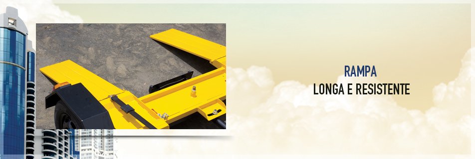A rampa desta carreta é longa e resistente, e protege o carro, evitando que a parte de baixo do veículo encoste ou raspe no chão.